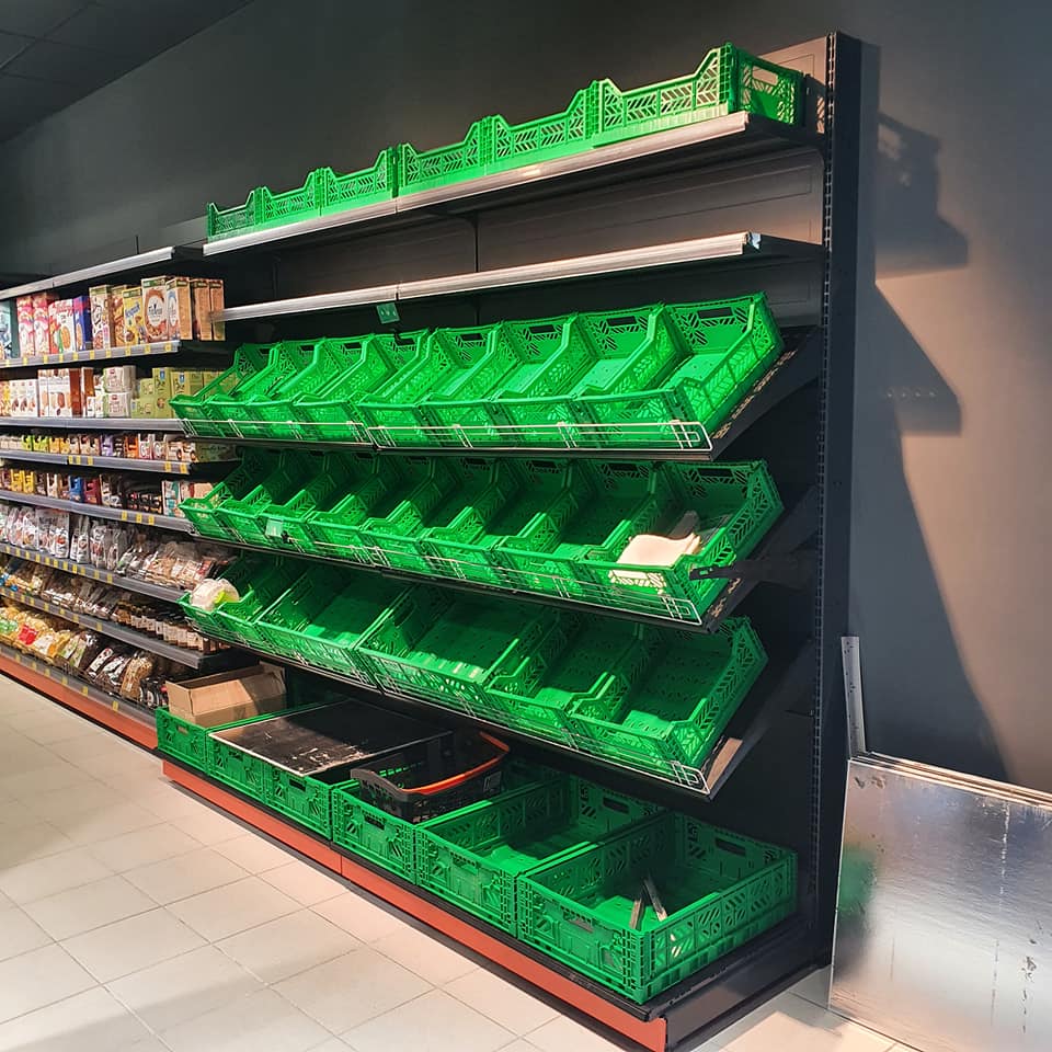 Die Obst- und Gemüseabteilung sollte modular aufgebaut sein, um Obst und Gemüse unterschiedlicher Größe präsentieren zu können. Verstellbare Regalböden oder die Verwendung von Körben in verschiedenen Größen ermöglichen eine effizientere Nutzung des Stauraums.